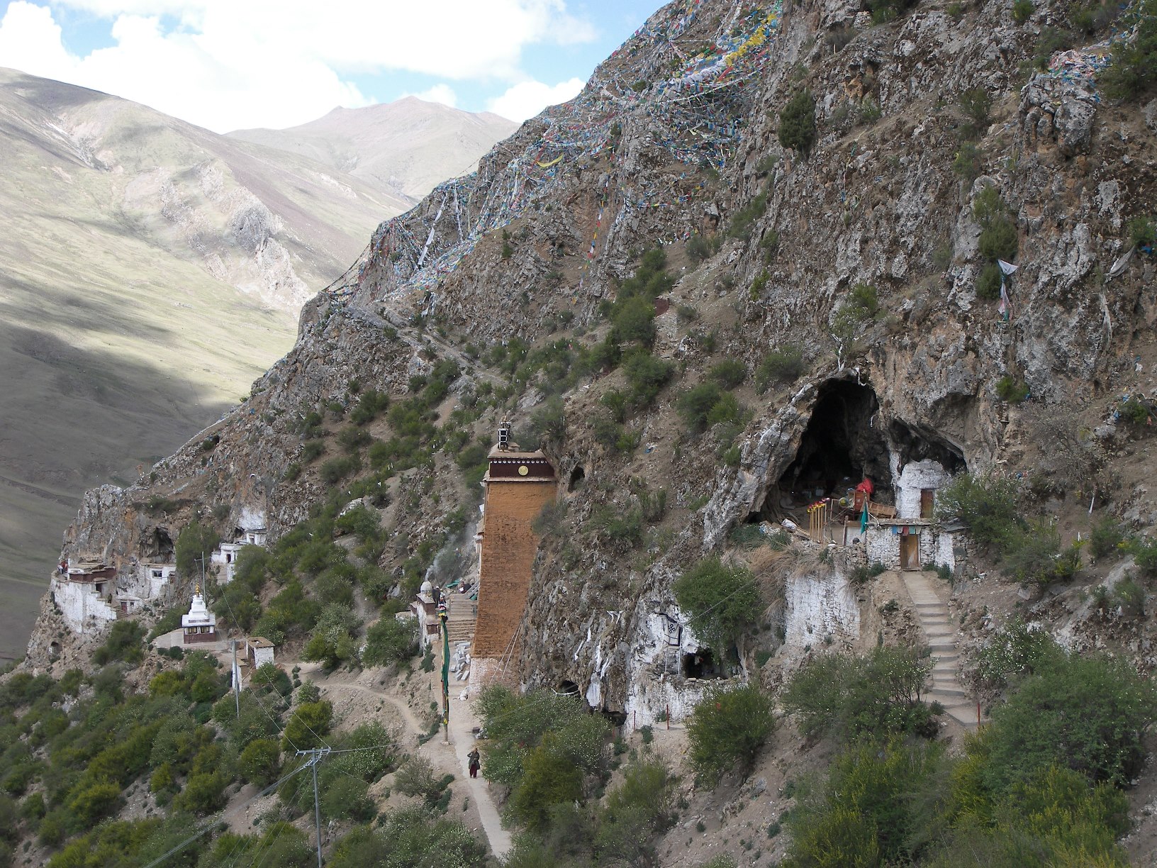 It is probably not of great interest for the average traveller but, for those with an interest in Tibetan Buddhism, Yerpa is one of the holiest cave retreats ever.  The history of Dark Yerpa includes many of the great names responsible for the establishment of Buddhism in Tibet. The Emperor Songtsen Gampo meditated in seclusion here: Guru Rimpoche and several of his disciples also meditated here: and here Jowo Atisha chose to preach extensively. Although the ancient Kadampa Gompa has been destroyed, the geomantic qualities that made Drak Yerpa a major power place remain and still attract hermits to its caves.