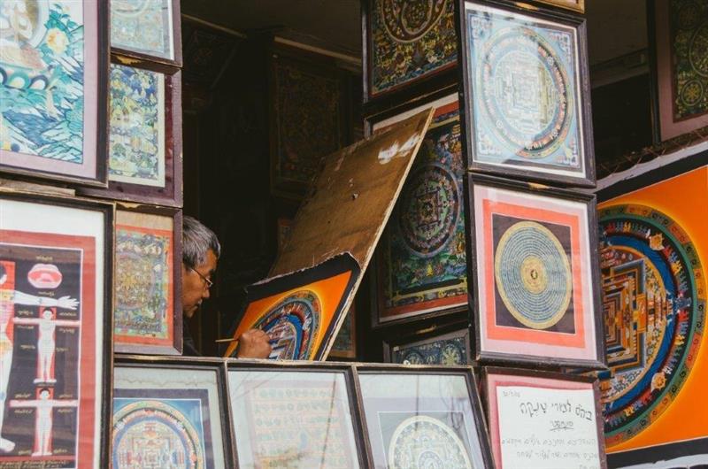 Painted mandalas and paubha scrolls (the Newar equivalent of thangkas) are far more than decoration. Every pigment, proportion, and pattern follows strict iconography and symbolic geometry, ensuring that each work resonates spiritually and culturally.