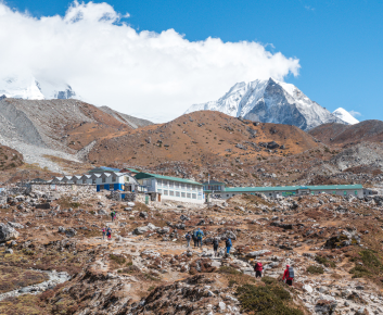 Today’s onward journey leads north, and the path heads up for about 40-50 minutes until you come to a mani-prayer stupa. The trail is gentle as you leave the grass-carpeted valley and slowly climb upwards. Today’s walk offers views of Mt. Tawache, Ama Dablam and to the north, Pokalde, Kongma-tse and the great wall of Nuptse. After a walk of almost two hours the trail from Pheriche joins near Dugla right before a small wooden bridge over the river of the Khumbu Glacier. Stop at Dugla for lunch, and afterward continue for an hour up a steep hill. At the top take a short break to breathe in the panorama of Mt. Pumori and other peaks west of Everest. From this point on, there is every possibility that you could feel the effects of high altitude. A two-hour trek takes you up to Lobuche, hidden and sheltered from the wind.