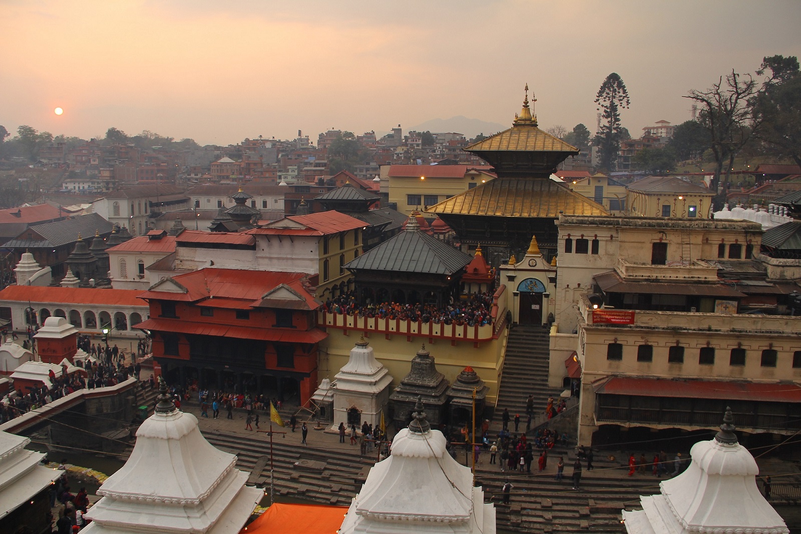 Next, visit the Pashupatinath Temple, one of Nepal’s holiest Hindu shrines. Located on the sacred banks of the Bagmati River, this UNESCO World Heritage Site is primarily a cremation site for Hindus, where the deceased are cremated by their eldest sons, and their ashes are then swept into the Bagmati River, eventually joining the Holy Ganges. Dedicated to Lord Shiva, the god of destruction, this temple, built in 1696, features a gilded roof and intricately carved silver doors. While access to the shrine is limited to Hindus, others can view the temple from the east bank of the river